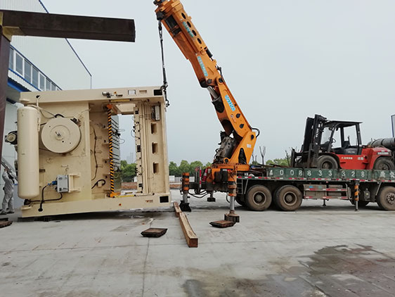 培訓后我們開始工作了,自重67噸的400噸中型沖床體積太大,80噸折臂隨車吊因配重不夠要將10噸叉車吊到隨車吊車上作配重,然后起吊半掛貨車上倒放的沖床放地面上。廠門寬3米,倒放的沖床無法搬運到車間里面,吊車又將設備打翻立起來,用窄面進廠門,落吊之前把搬運坦克車放在沖床下面,現在10噸叉車派上用場了,我用叉車將大沖床慢慢往車間推,速度慢得像螞蟻一樣一點點的往前進,還換了多次方向到安裝基坑附近,再由吊車打翻按安裝要求就位,搞到半夜才圓滿足完成。