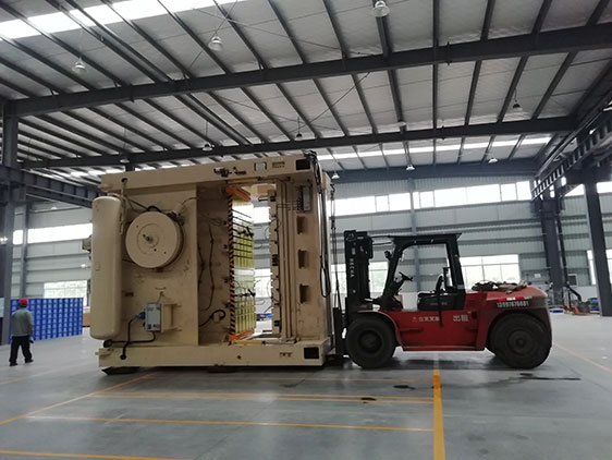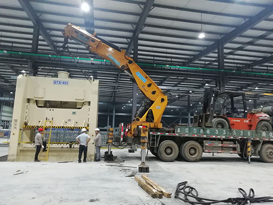 設備2019年4月29日,宜昌明智叉車租賃受武漢晟安達吊裝公司之邀,配合該公司在廣汽集團零部件配套企業中基天谷安裝400噸沖床設備搬運就位。